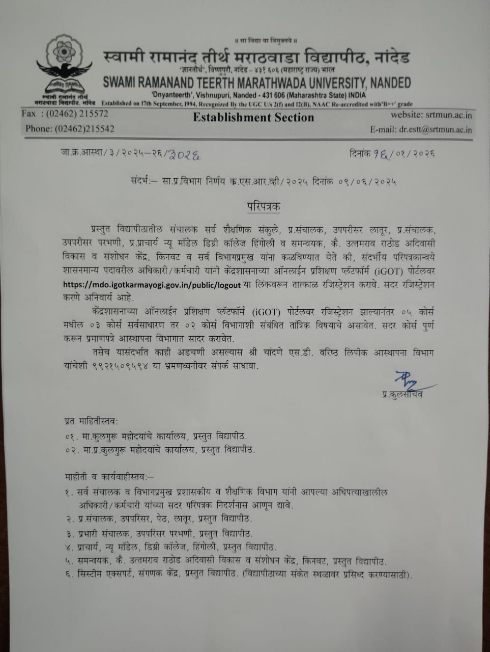 केंद्र शासनाच्या ऑनलाईन प्रशिक्षण प्लॅटफार्म iGOT पोर्टलवर रजिस्ट्रशेन करून 05 कोर्स पूर्ण करणे बाबत परिपत्रक igot course circular 3026 16012023Download