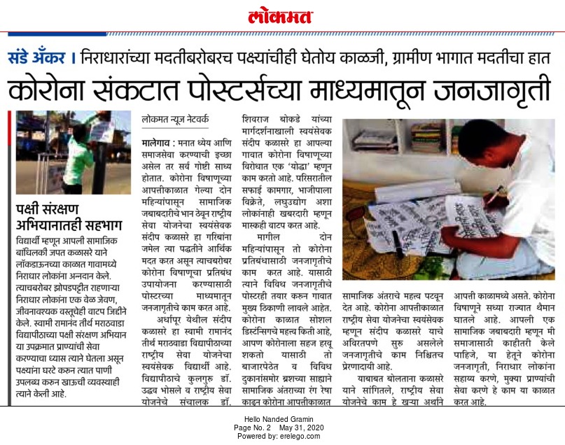 | 31 | To, Principal, Sarasvati Mahavidyalaya,Kinwat. Dist,Nanded. | Prof. Chate R.G. Prof. Kiran V.Ainenwar | 9822555961 9881527631 | 2 | 200 |