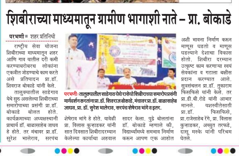 - Beginning of NSS regular activities in college and adopted villages/slum areas.