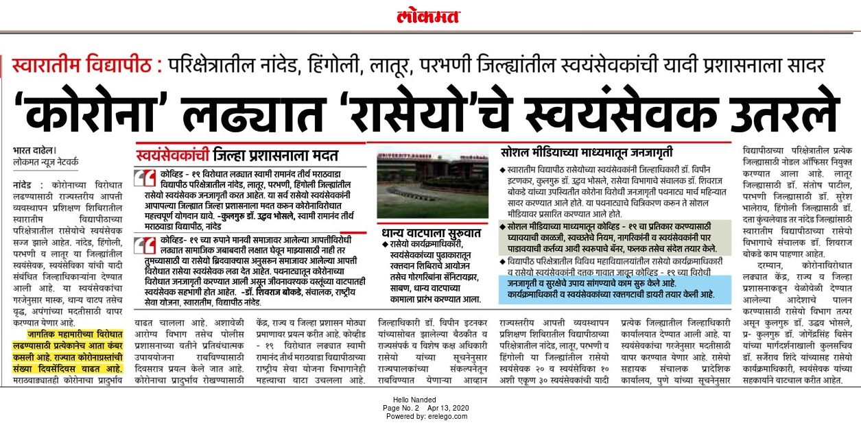| 34 | To, Principal, Shri Renuka Devi Maha.Shrishetra Mahur. Dist,Nanded. | Prof. Dr. Jadhav S.B | 9921598433 | 1 | 100 |